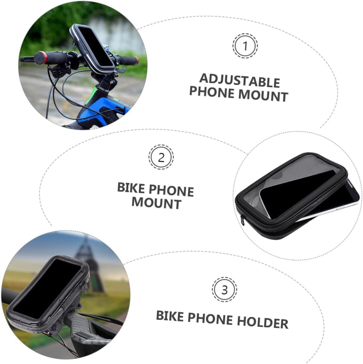 SUPVOX Bike Handlebar Phone Bag with Rotation Mountain Motorcycle Phone Holder for Bikes Lightweight Black Case Sensitive Touchscreen Visibility