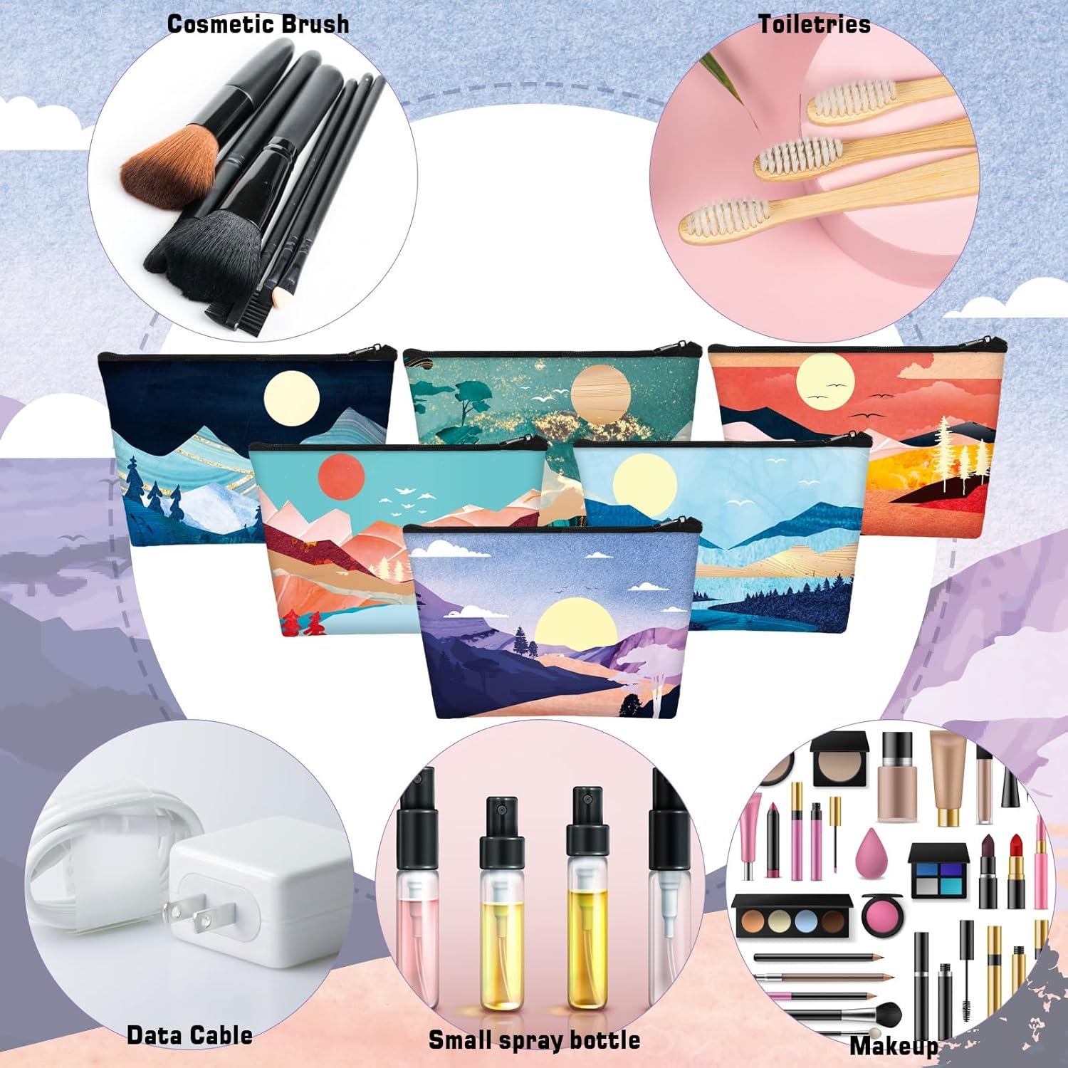 Sweetude 12 Pcs Mountain Makeup Bag Portable Travel Cosmetic Bag Cute Zipper Pouches for Travel Waterproof Toiletry Organizer Printed Storage Pouch for Women Gifts