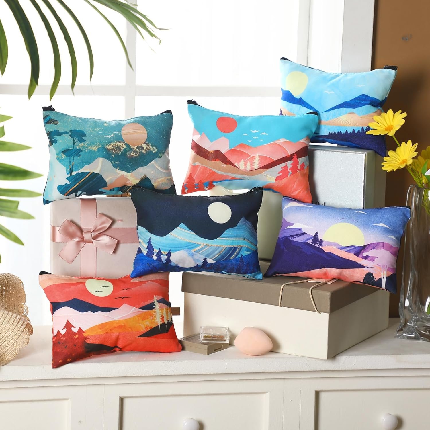 6 Styles for You to Choose: the package comes with 12 pieces of mountain makeup bags in 6 different styles, 2 pieces for each style, enough to meet the daily storage needs of women, and can also be applied as stationery to store school supplies, convenient and practical
