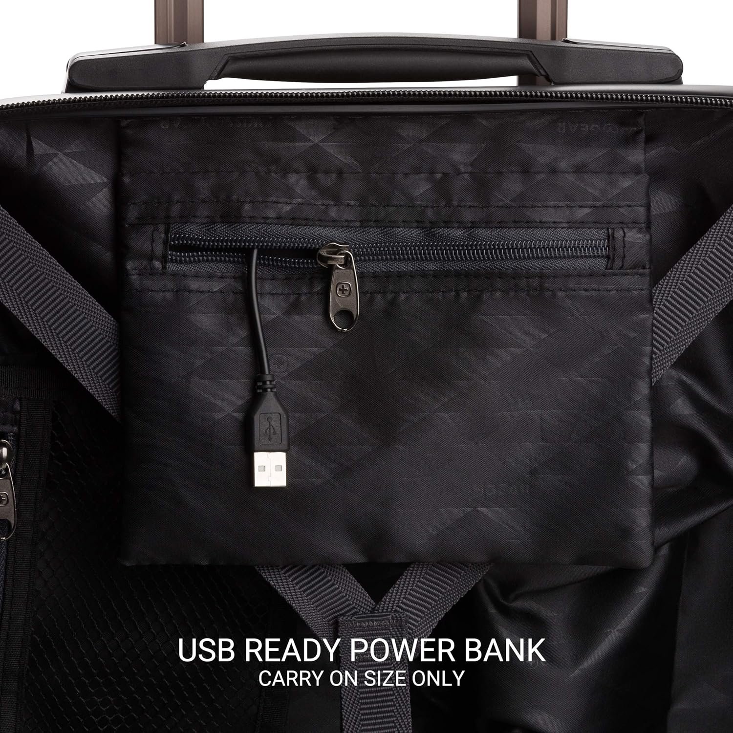 To claim that the SwissGear 7272 19-Inch Energie hard luggage collection is simply durable would be an understatement. Equipped with a rugged PC shell, our carry-on suitcase with spinner wheels displays a polished architect. Our hard-case suitcase also features eight multi-directional spinner wheels for 360-degree maneuverability. Equipped with tech-savvy features for the modern traveler, this hard-sided luggage with spinner wheels introduces USB capability, so you can now rejuvenate your drained smartphone or tablet by simply connecting to your hard-case luggage. Adding to its symmetric aesthetic, its main compartment opens into a split case that features a tie-down clothing compartment with a zippered accessory pocket, while the other side houses a large zippered compartment with additional mesh and cinched pockets. An internal mesh pocket hides the USB cord that is connected to the back – hook it to your power bank to charge a low-battery whenever needed and wherever you travel. Finished with a retractable locking handle, our hard suitcase expands for additional packing space and features an integrated TSA-approved lock for extra security. Pack right utilizing the luxury fixtures ingrained within this sleek spinner luggage case.