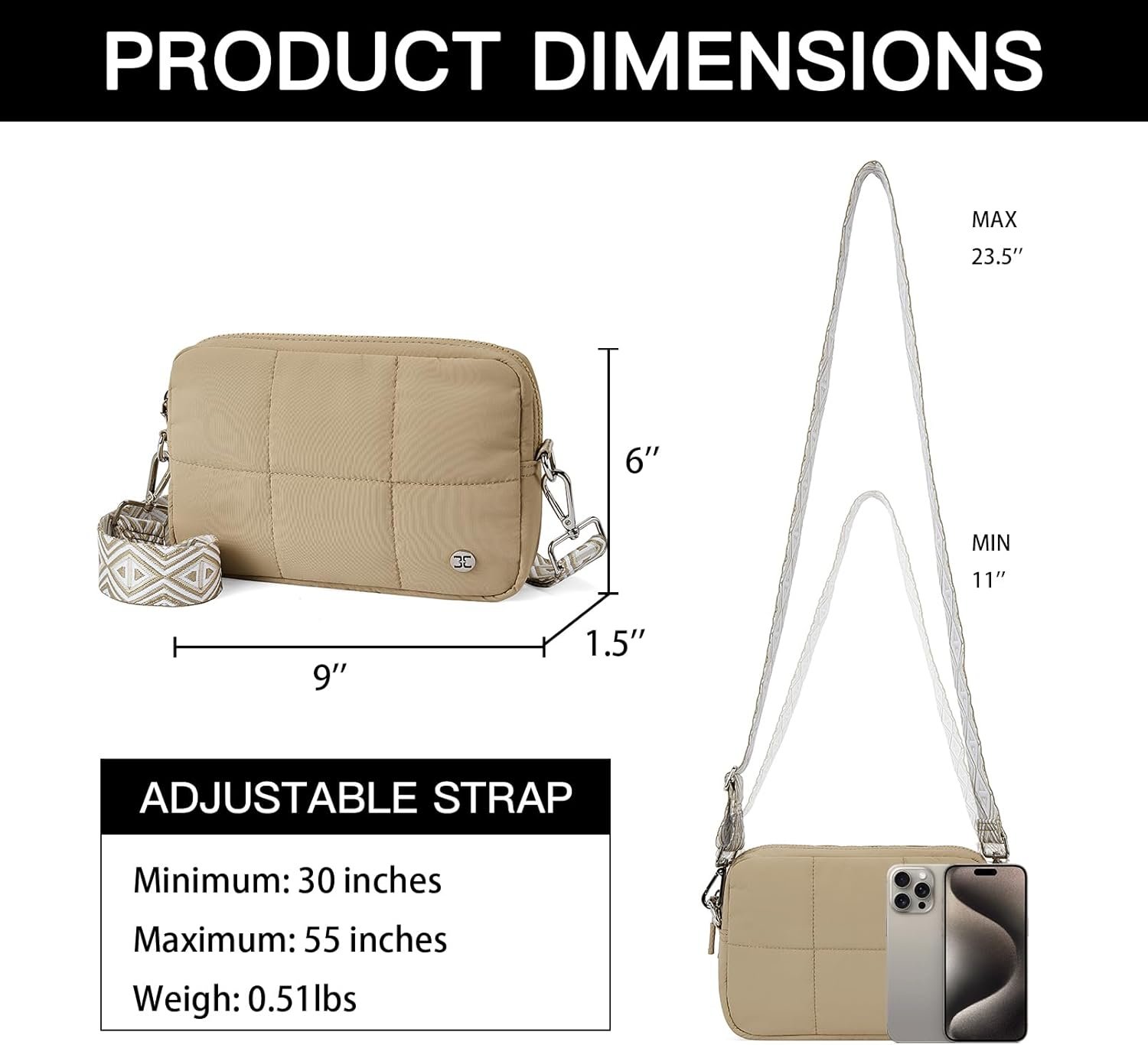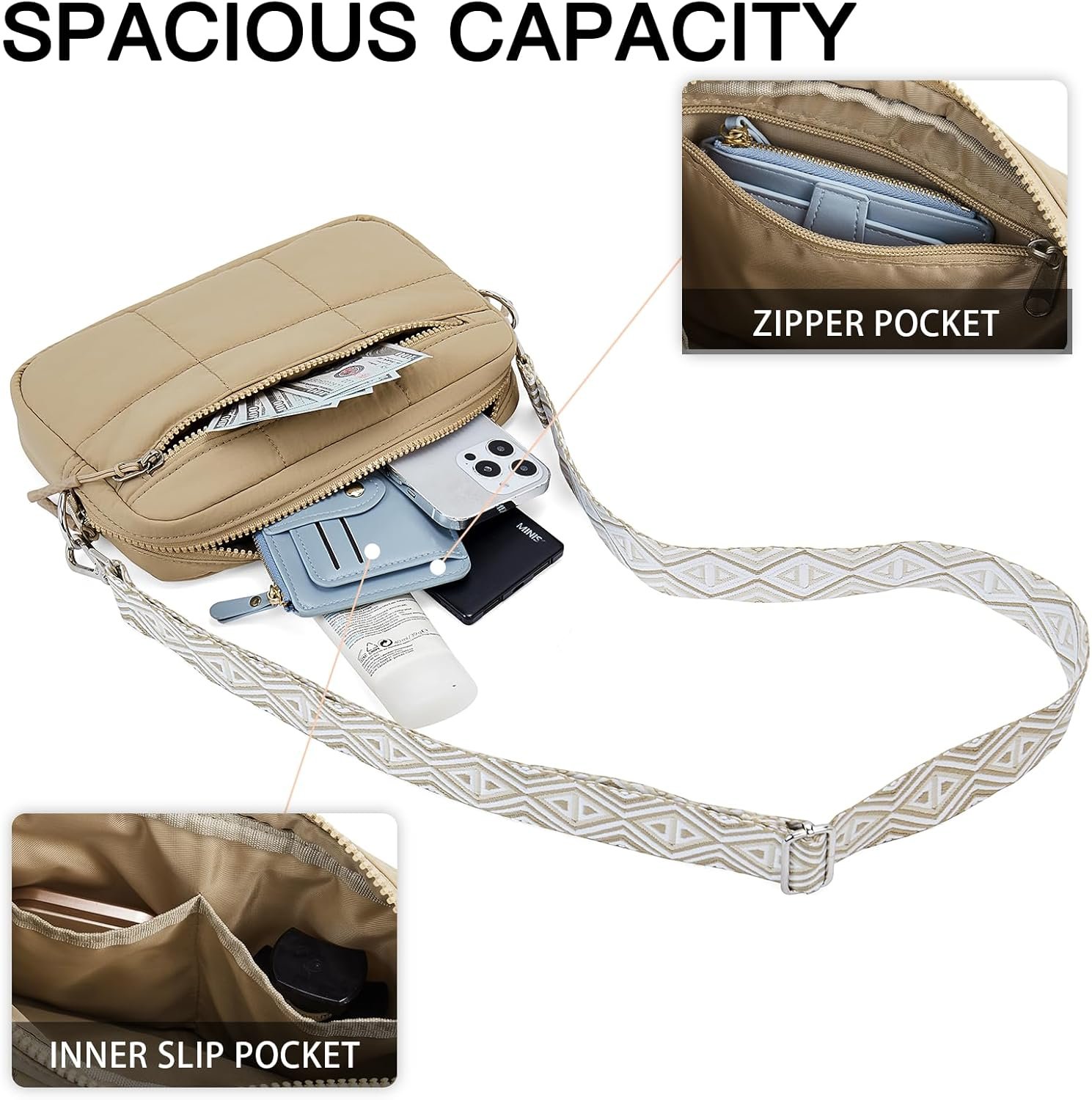 Telena Crossbody Bags for Women Cross Body Purse with Guitar Strap Lightweight Puffer Shoulder Bag for Travel