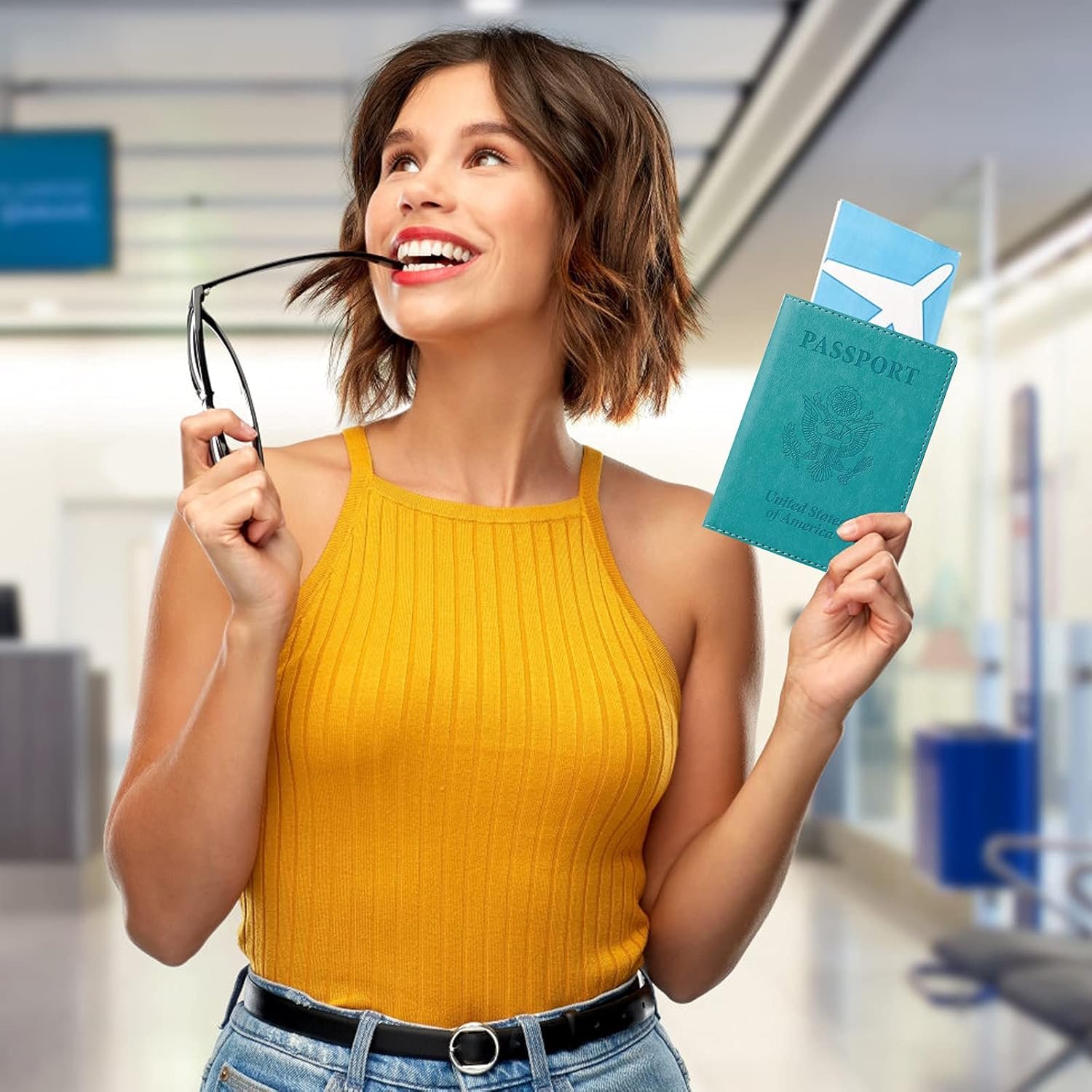 TIGARI Passport Holder for Travel Women Men, PU Leather Passport Wallet Cover Case Sleeve, Waterproof Protected Document Organizer, Family Vacation Plane Cruise Travel Essentials-Teal
