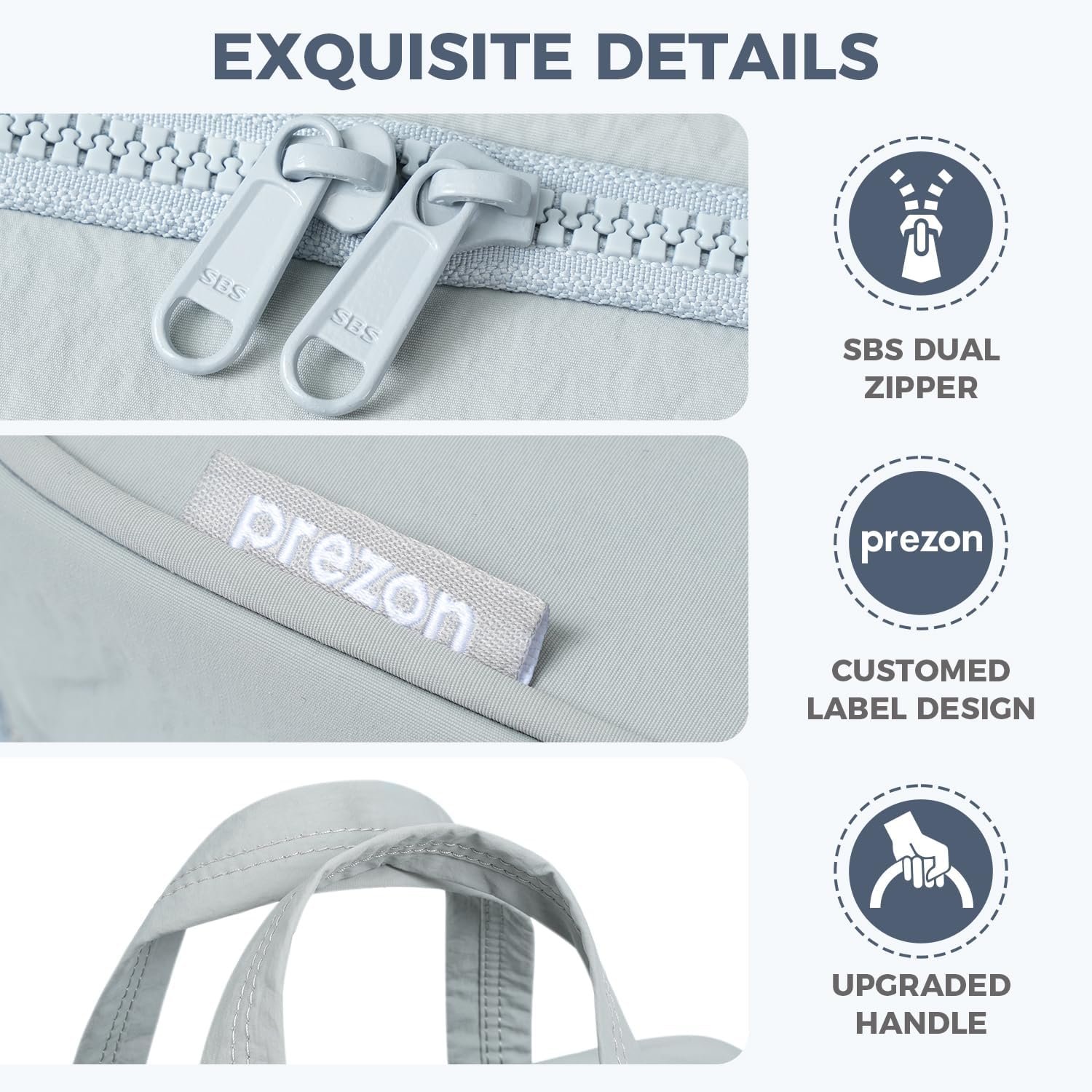 Ample Storage with Compact Design The Prezon hanging toiletry bag strikes a perfect balance between spaciousness and a sleek, compact form. It’s expertly designed to stow away easily in your luggage while still offering a remarkable amount of storage when needed. This allows you to neatly organize a wide range of travel essentials, from shampoo, lotions, and facial cleansers to toothpaste, toothbrushes, hairbrushes, and daily makeup items. Its size makes it an excellent fit for overnight stays or short trips.