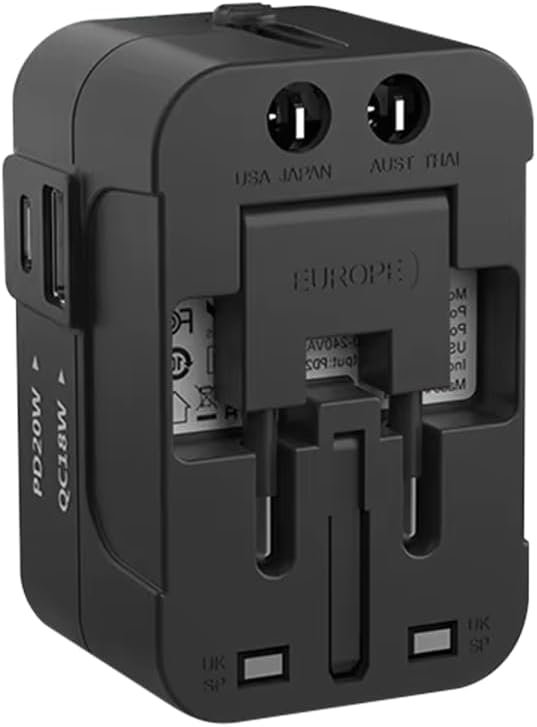 【Bonus SIM Voucher Included – Stay Connected Abroad】: Includes universal travel adapters (black) + a free international travel SIM voucher. Redeem via the INSTASIM app (by TSIM) on iOS or Android to get affordable eSIM data plans while traveling.