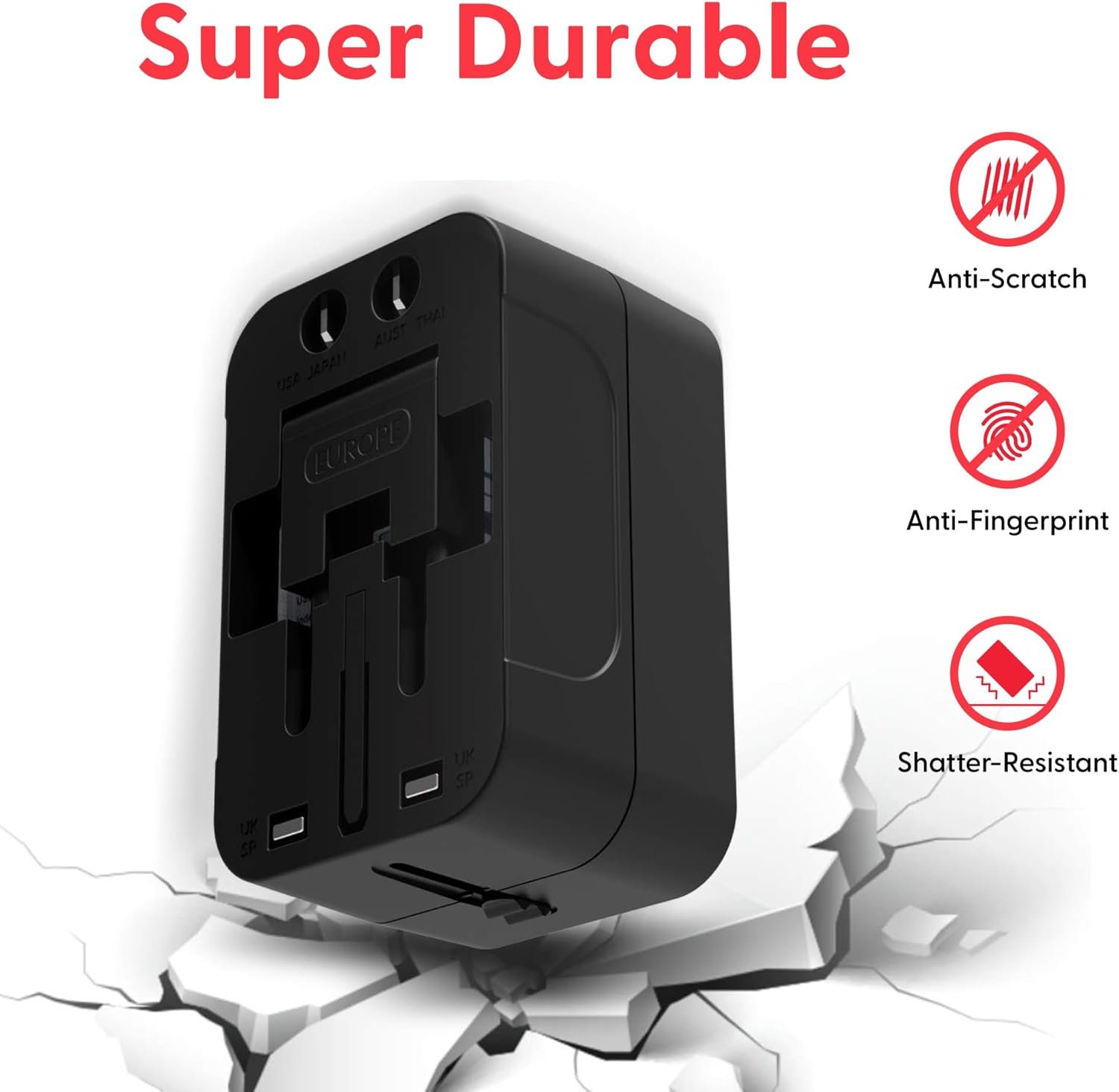 【Multiple Safety Protection】This global Power Adapter built-In safety shutters protect users from the direct touch of the live parts on the socket outlet. Built-in 6.3A fuse, automatically cuts off power when current exceeds rated load. Provide over-current, over-voltage, Short-circuit Protection, surge protection.