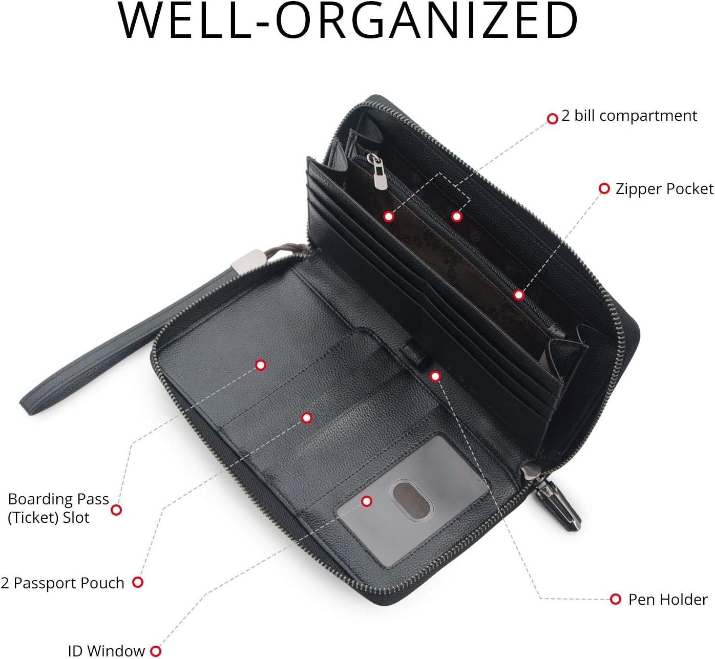 Efficient Travel Organizer: Designed to accommodate multiple passports (up to 4), tickets, cash, travel documents, 6 credit cards, an ID window, insurance cards, a pen, and even your phone, this travel document organizer offers ample storage space to keep everything organized and easily accessible. It’s the perfect companion for solo trips or family vacations.