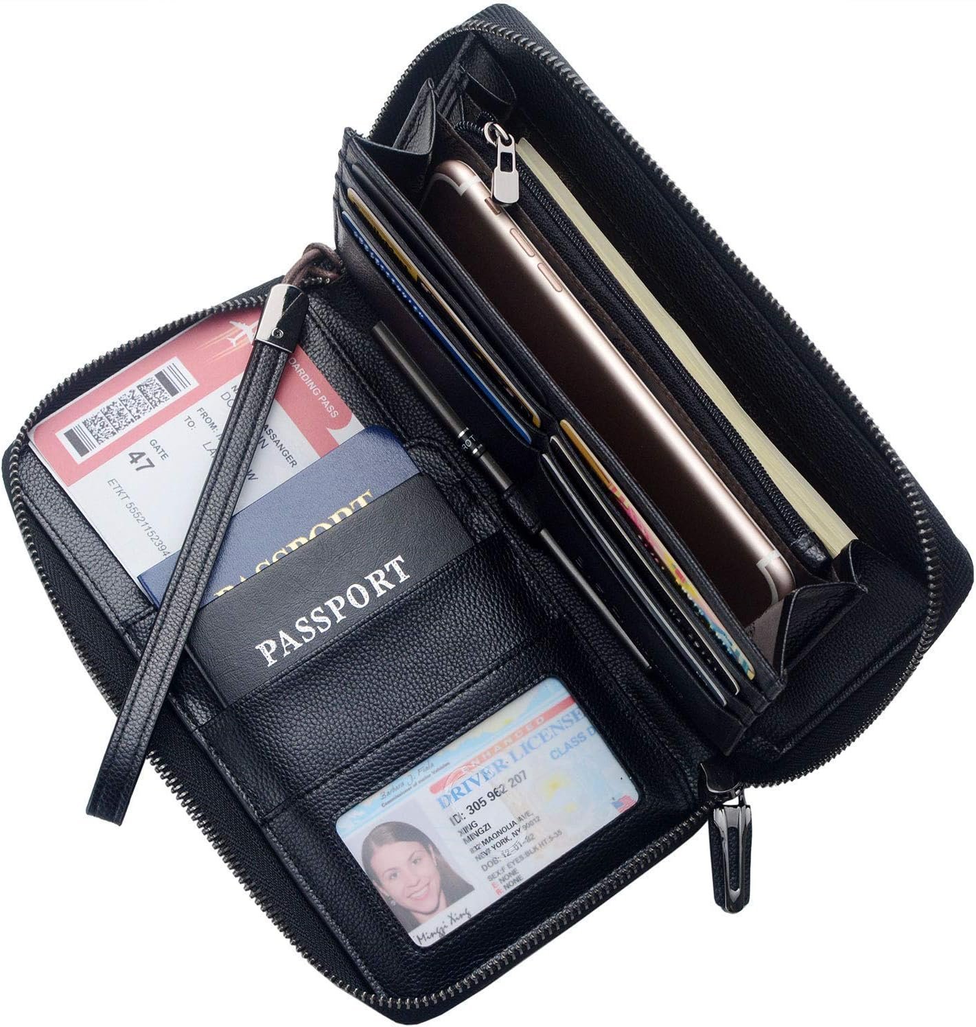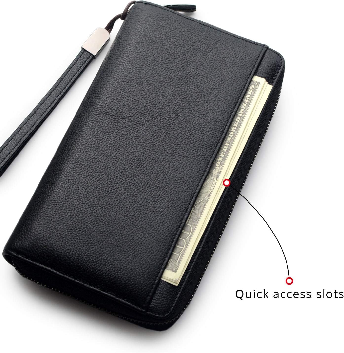 Travel Document Organizer RFID Blocking Leather Multiple Passport Wallet Family Holder Id Wrist Strap(Black)