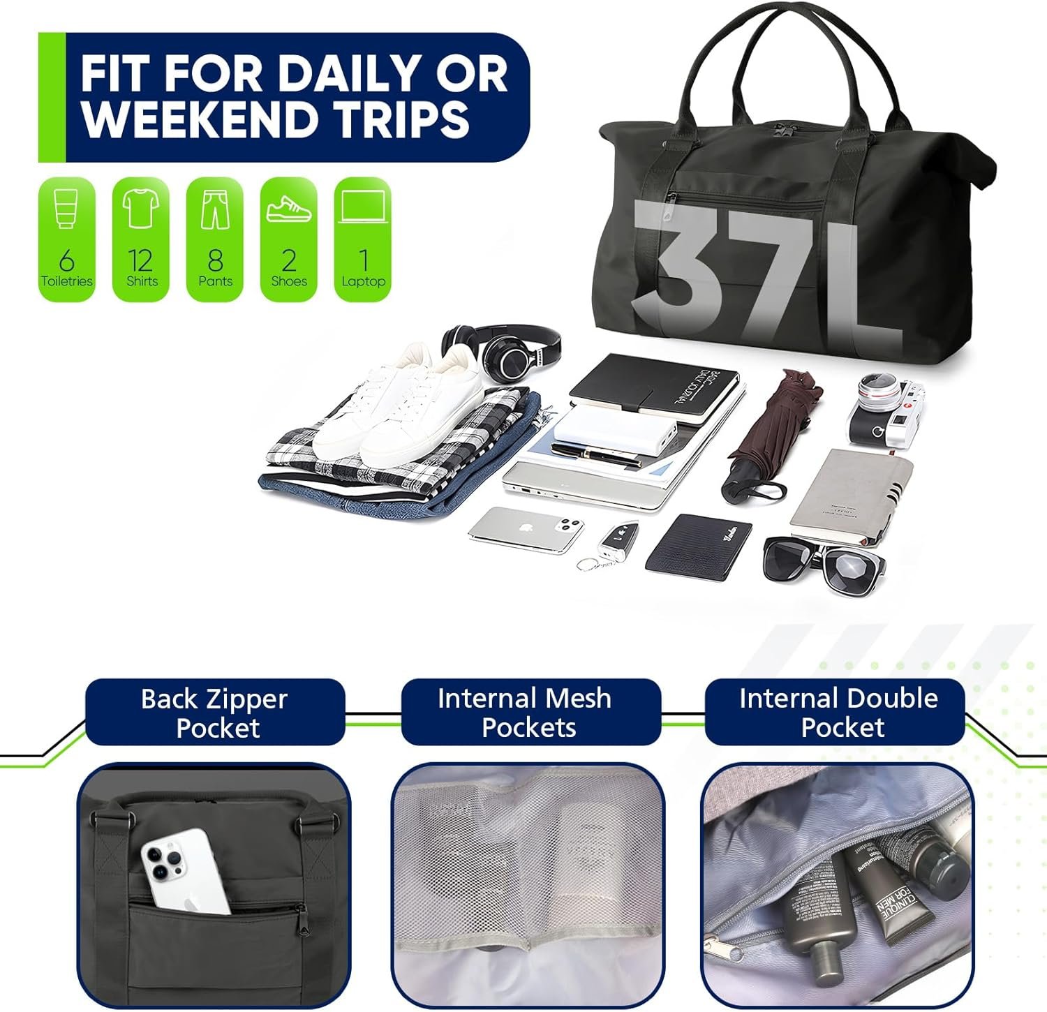 Travel Duffle Bag, Weekender Travel Bag Men Small Gym Bag for Women, Hospital Bag for Labor and Delivery, Overnight Bag Luggage Bag with Trolley Sleeve, Airplane Travel Essentials for Flying(Black)