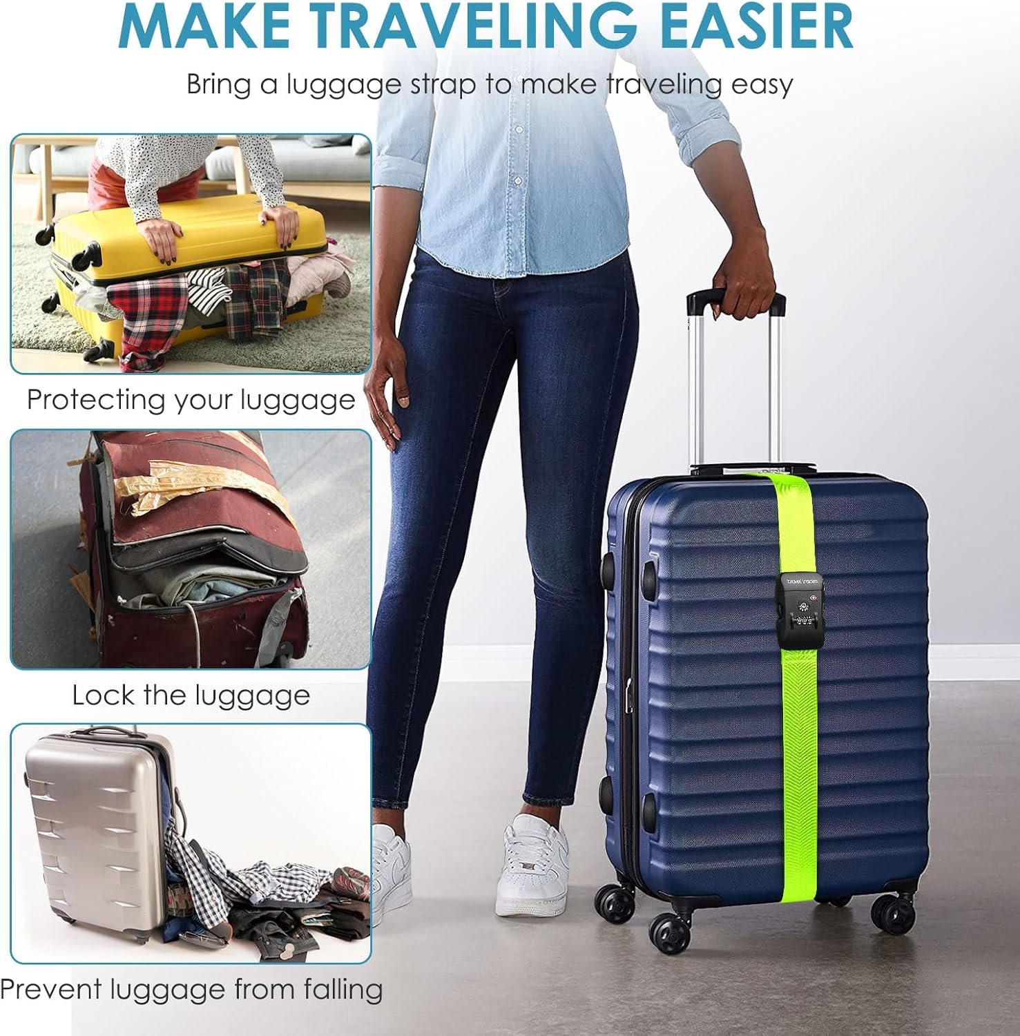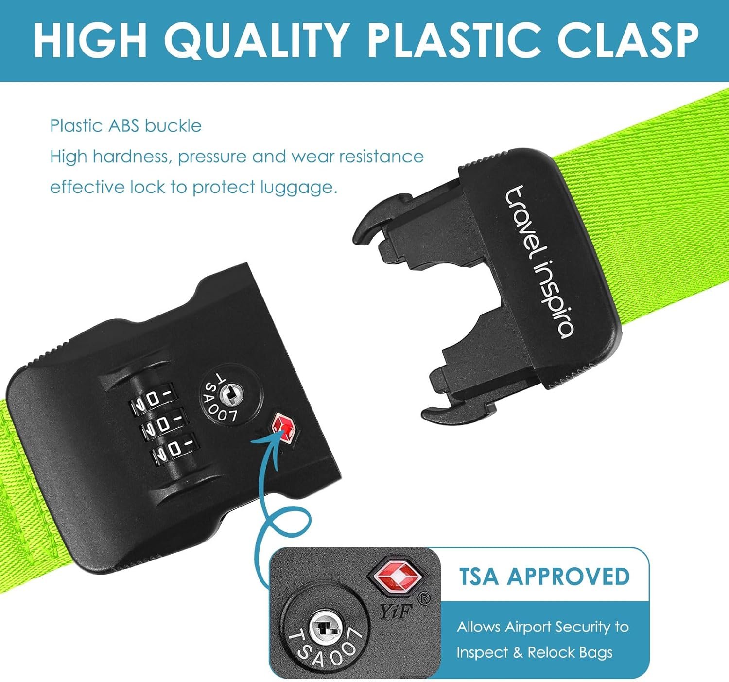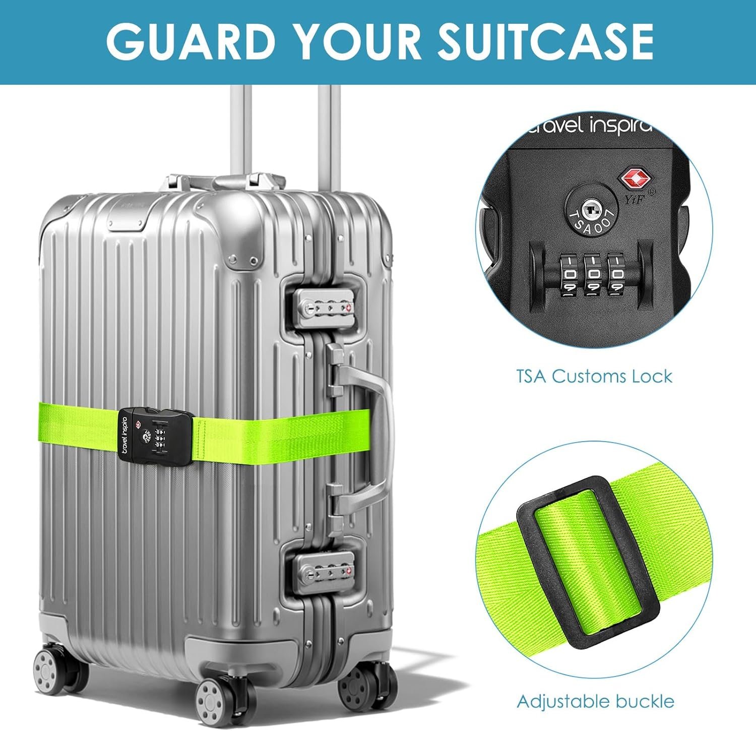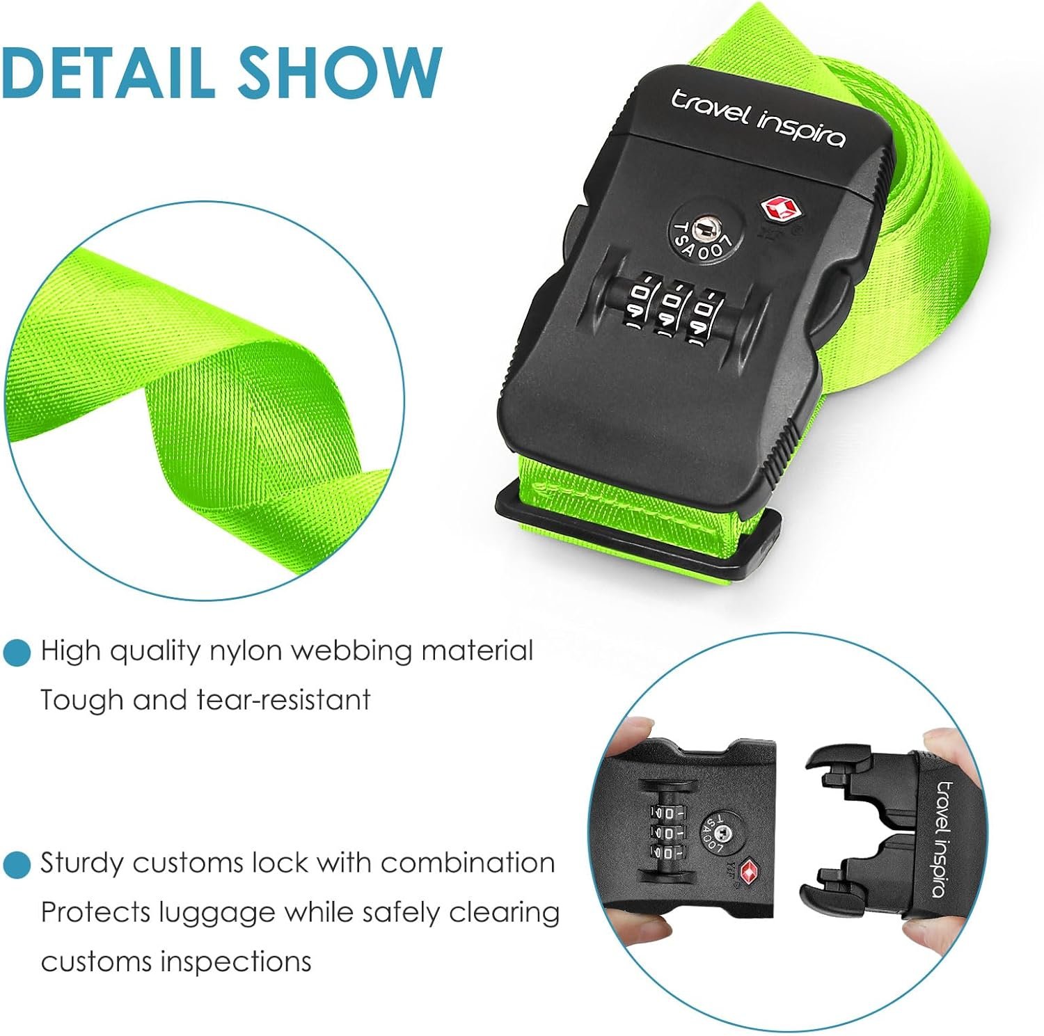 Travel Inspira Luggage Straps for Suitcases with TSA Lock, Protect Your Luggage Anti-Burst, High Visibility Color, Easy to Identify Luggage Adjustable Heavy Duty Belt for 20-32 Inch Suitcases