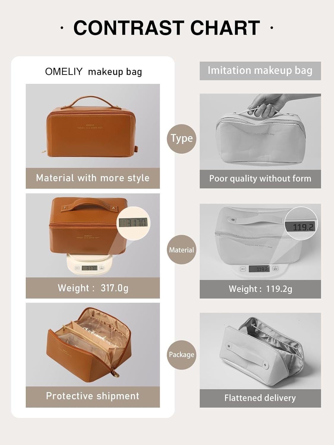 【Premium material】: Made from high-quality PU material, this travel makeup bag offers durability and water resistance. Cosmetic organizer bag ensures that your cosmetics and toiletries are well-protected during travel or everyday use.