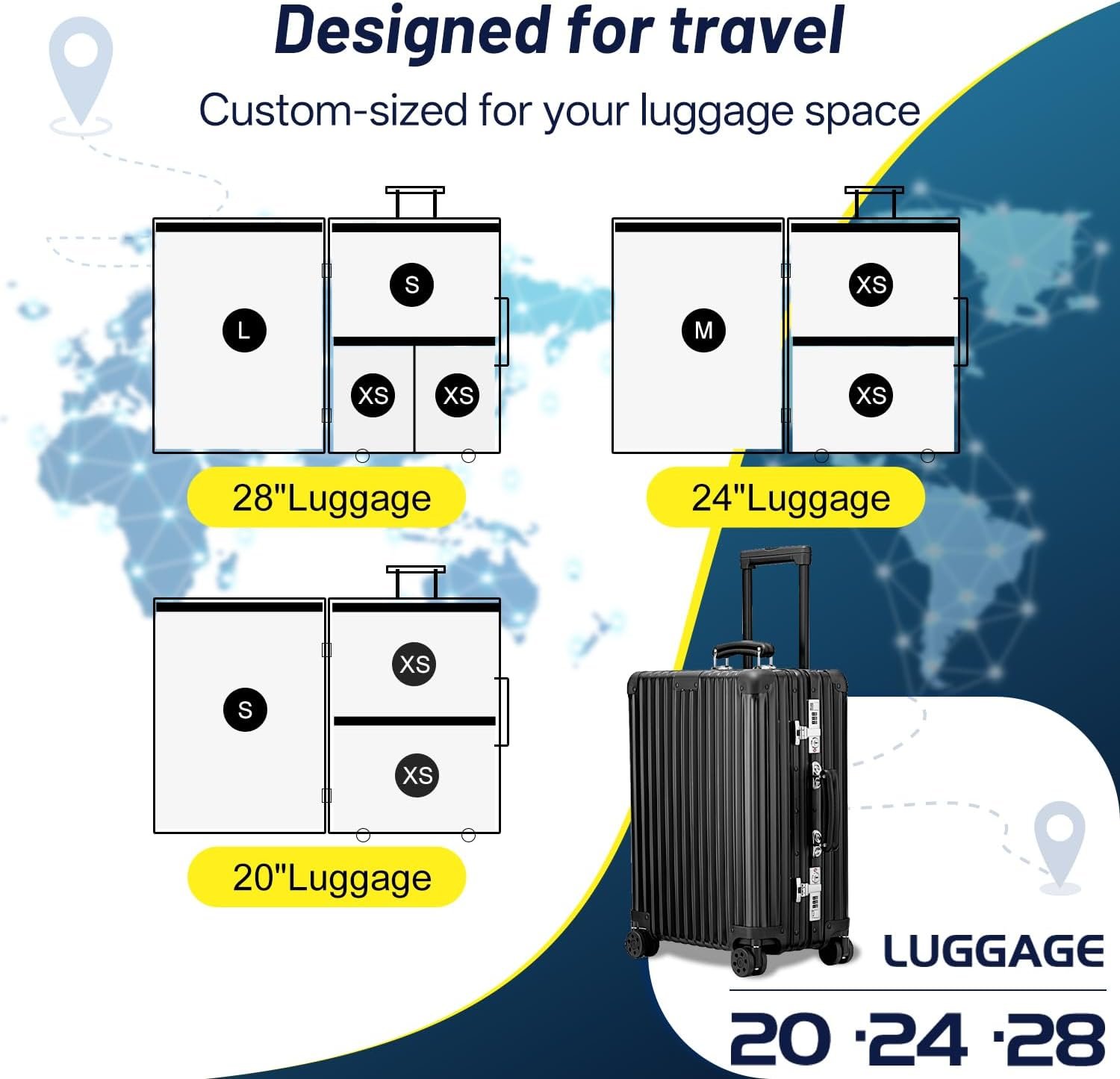 Customize Space for Your Luggage:Every bag size is carefully researched and measured to help you better organize your luggage, saving up to 80% space.Whether you’re on a cruise, traveling, moving, or taking an international flight, our vacuum sealed clothing bags are your perfect companion.