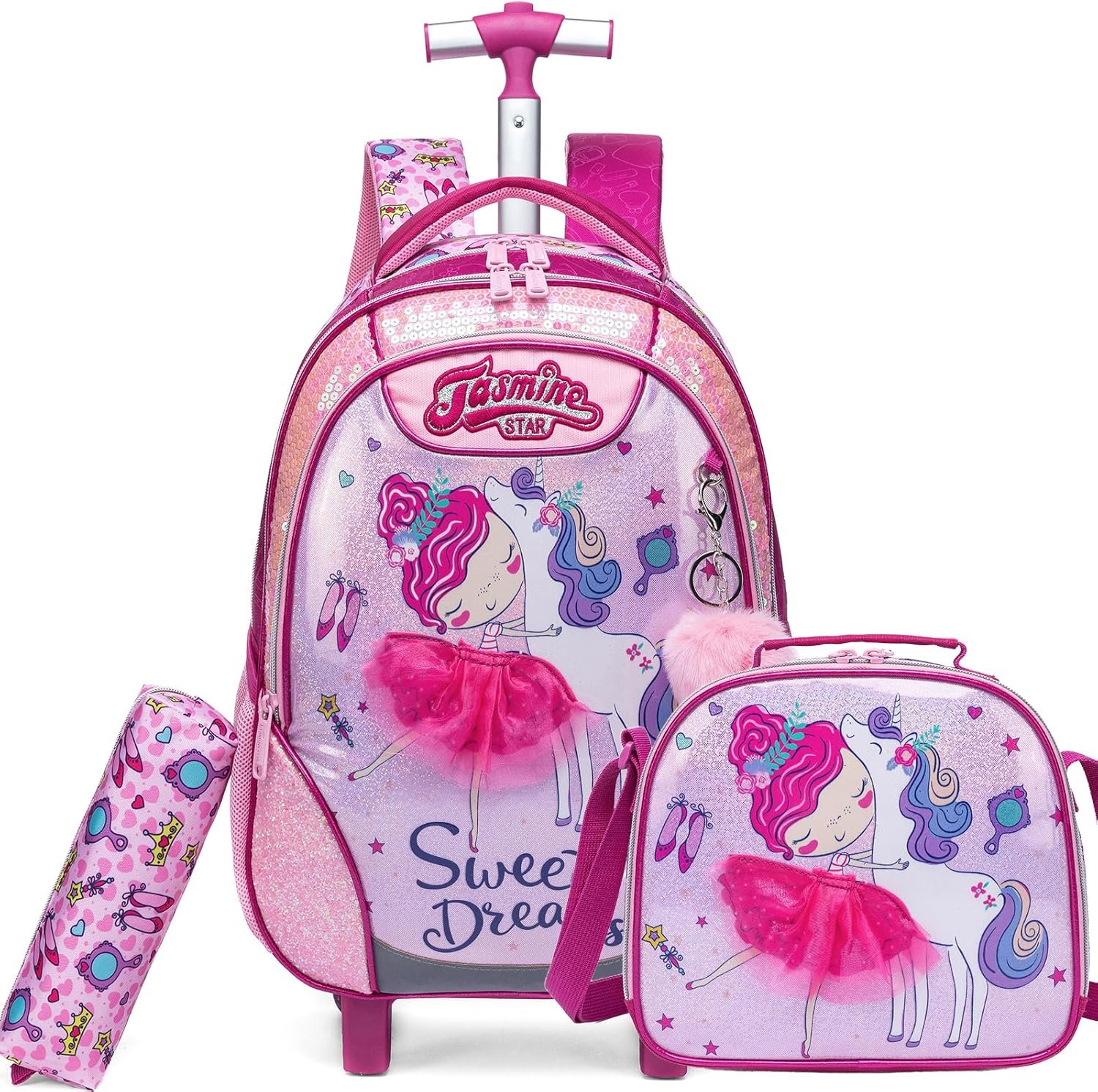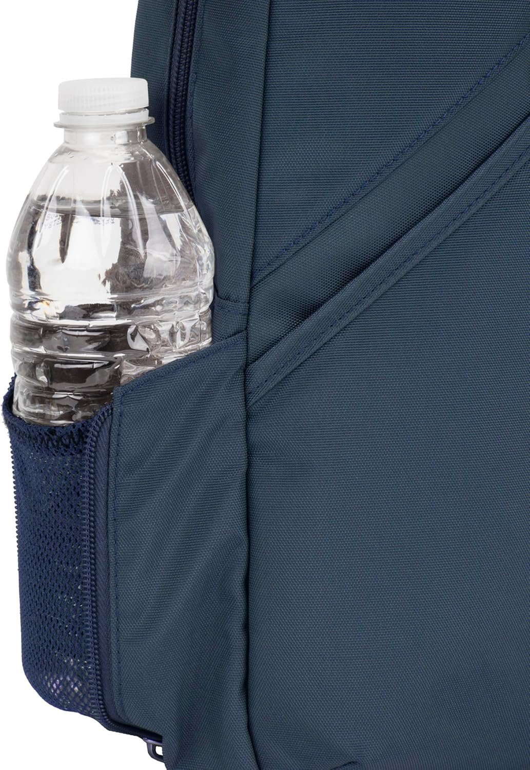 Adjustable left/right shoulder reversible strap with top grab handle. Mesh expansion pocket holds a water bottle