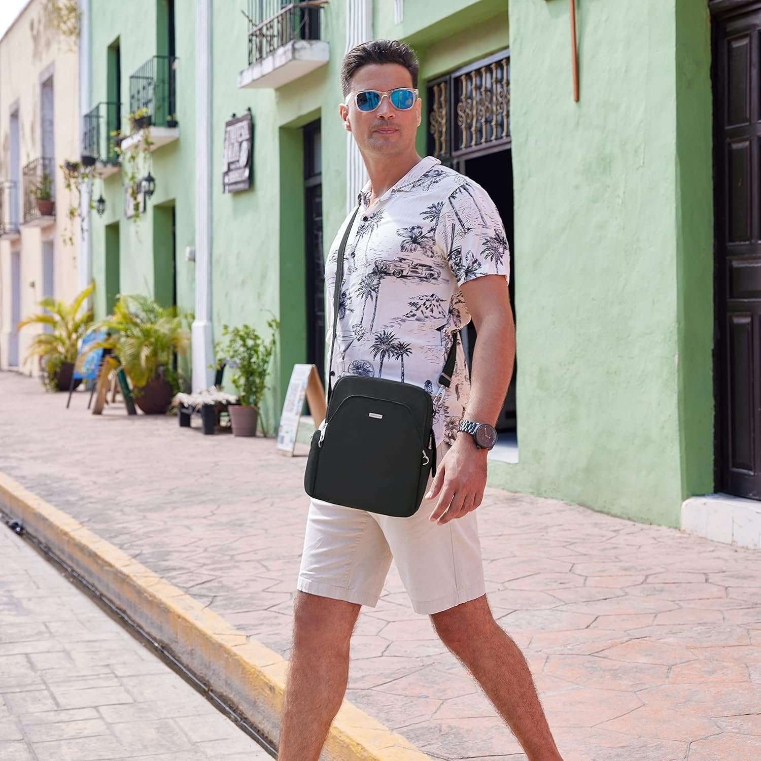 Customers find this travel bag spacious with pockets that hold everything they need, including a small lotion bottle, and appreciate its versatility for both everyday use and travel, particularly in Europe. The bag features a compact design that fits an iPad mini, sturdy straps, and locks that make them feel secure. They like its understated style and appreciate that it’s not heavy or bulky, making it easy to carry.