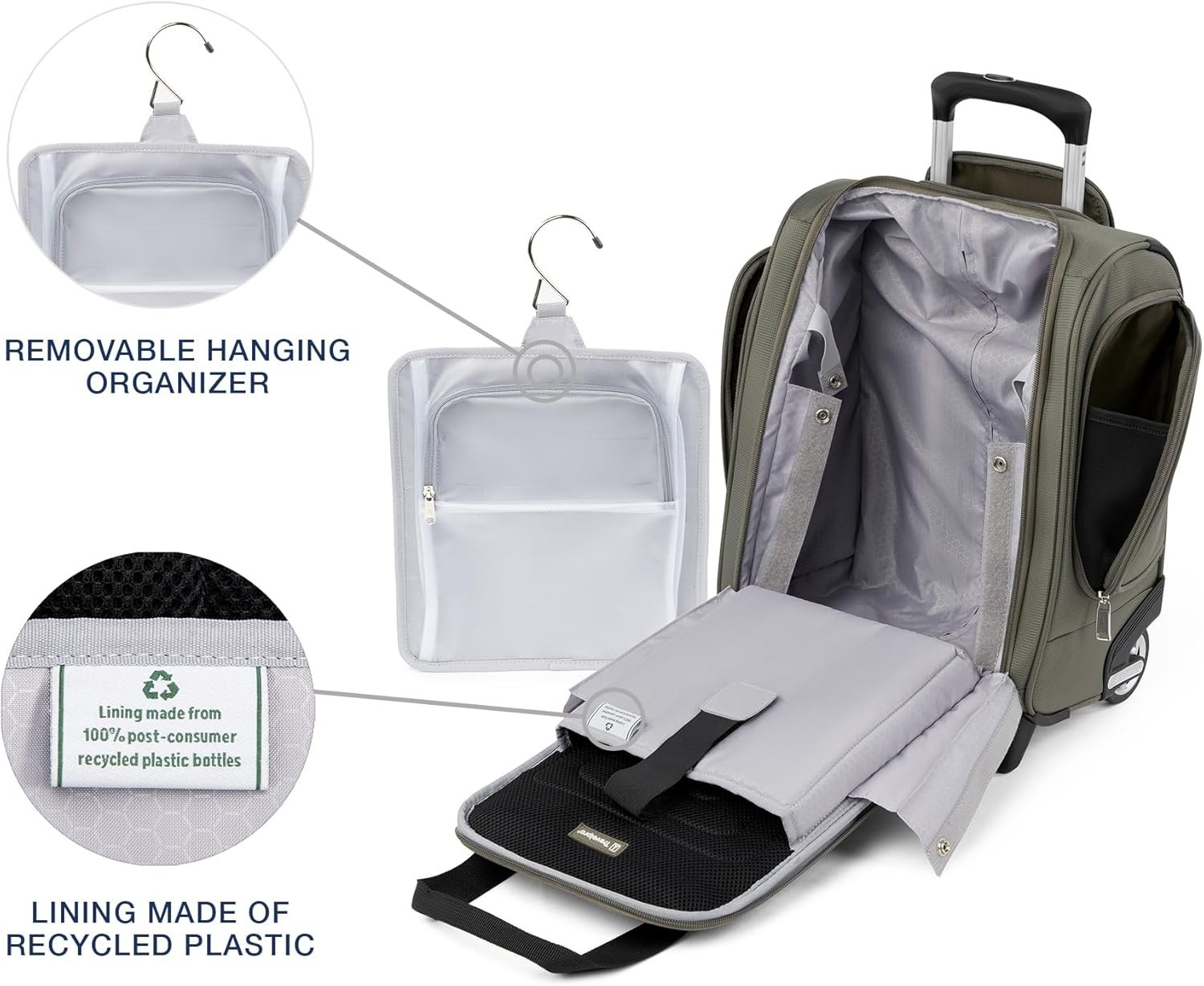 Like traveling with a personal assistant, the Travelpro Rolling UnderSeat Carry-On is so organized, you don’t have to be. Numerous, specially-designed pockets include a padded laptop or tablet sleeve, removable plastic compartment for cosmetics, office supplies or accessories, quick-access external pockets and a roomy interior with large zippered opening. Designed to fit under the seats of most major domestic airlines, this compact carry-on is your ideal onboard traveling companion, flying solo for a quick turnaround or playing back up to your other luggage. Lightweight PowerScope Lite handle reduces wobble, ball bearing wheels keep you rolling smoothly and a rear stacking strap gives you the flexibility to stack this bag atop another rolling bag for hands-free travel. This Fit to Fly carry-on bag has been sizer been tested to accommodate overhead bin space on most major US airlines. Fully expanded Carry-On may not meet airline restrictions. Backed by Travelpro’s Limited Lifetime Coverage plus a new and expanded “Trusted Companion Promise”, which covers the cost of repair for damage from airline or other common carrier for 1 year. Also, with our new Trusted Companion Promise, we will even reimburse shipping costs when you send your bag to us for warranty repair or replacement during that 1st year.