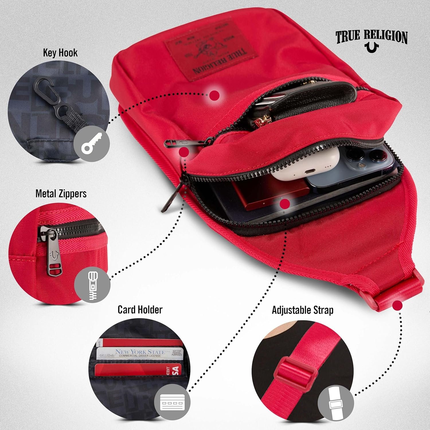 True Religion Small Crossbody Bag for Men and Women
