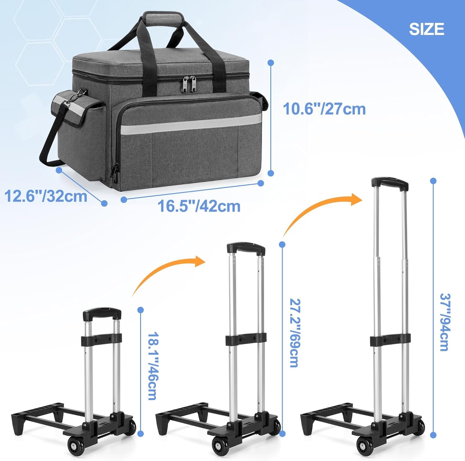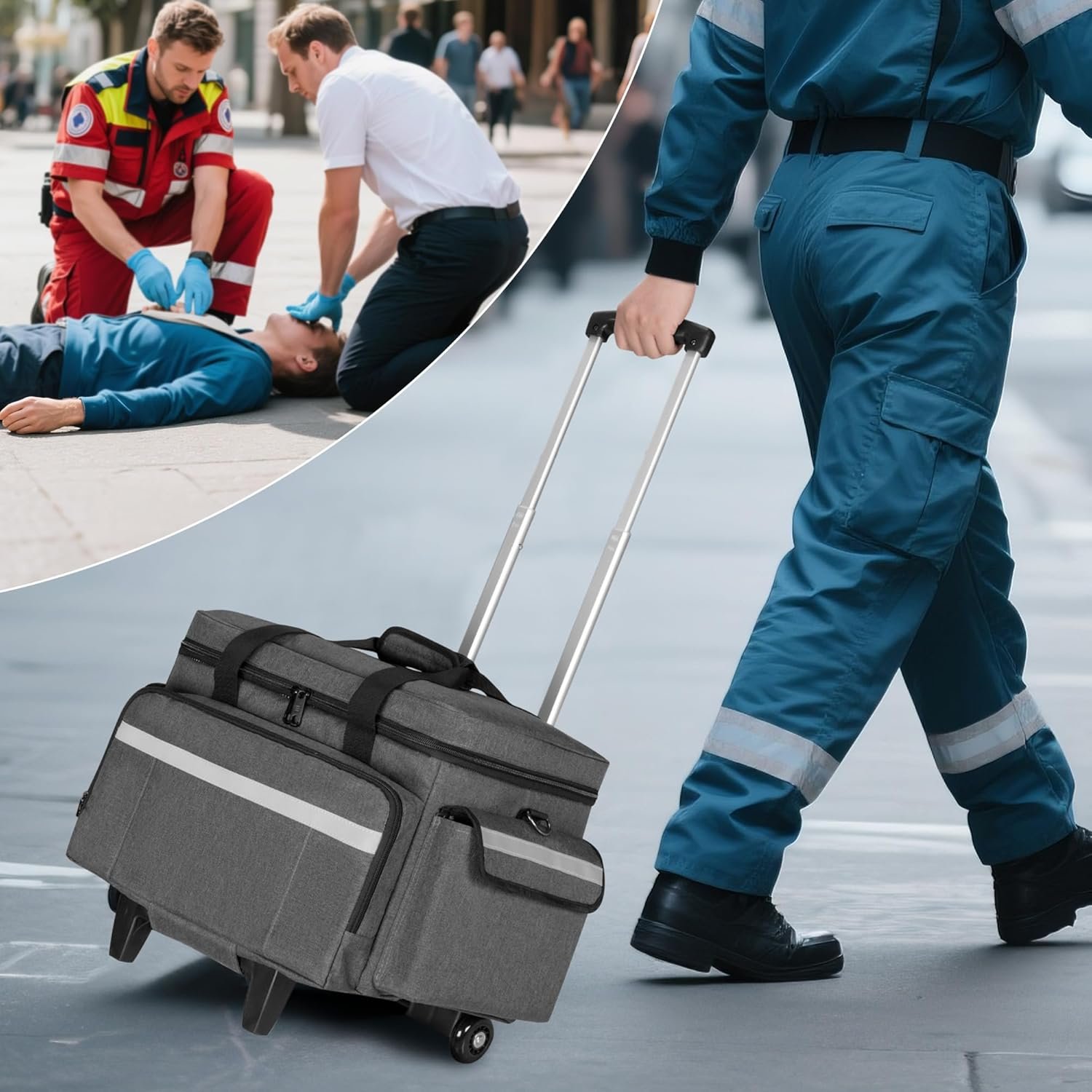 【Effortless Mobility】: Equipped with a detachable, sturdy trolley featuring an extendable handle (up to 37”), hand strap, and a comfortable shoulder strap with a high-quality adjustable padded pad, designed to reduce strain and enhance portability for home care nurses, doctors, first responders, and medical professionals.