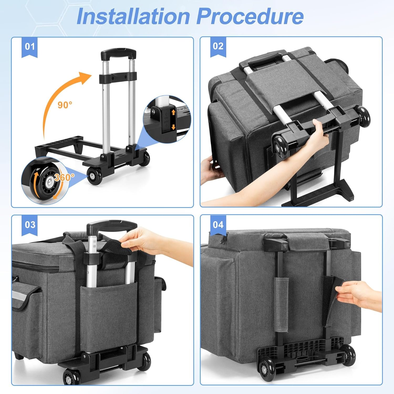 Detachable and foldable trolleyLarge nylon bag with handle and shoulder strapIt is very suitable to be placed in the staircase storage room or the basement for emergencies. Could be