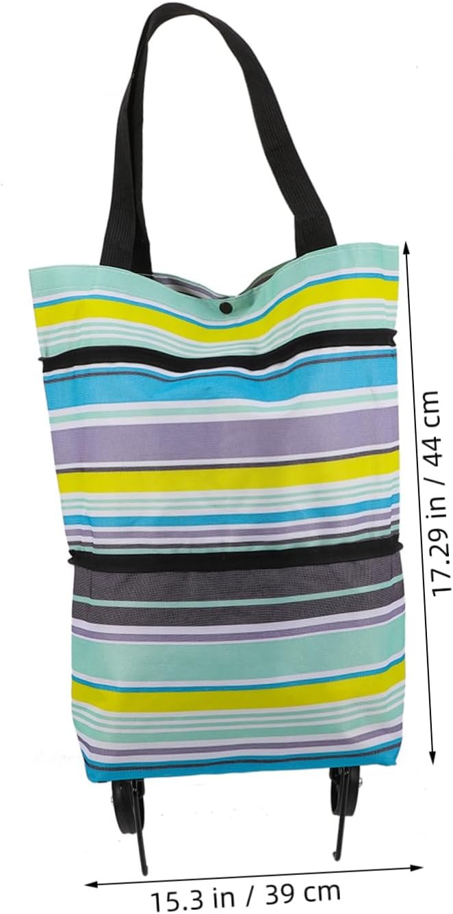 -Material:Oxford cloth, wood grocery bag with wheels