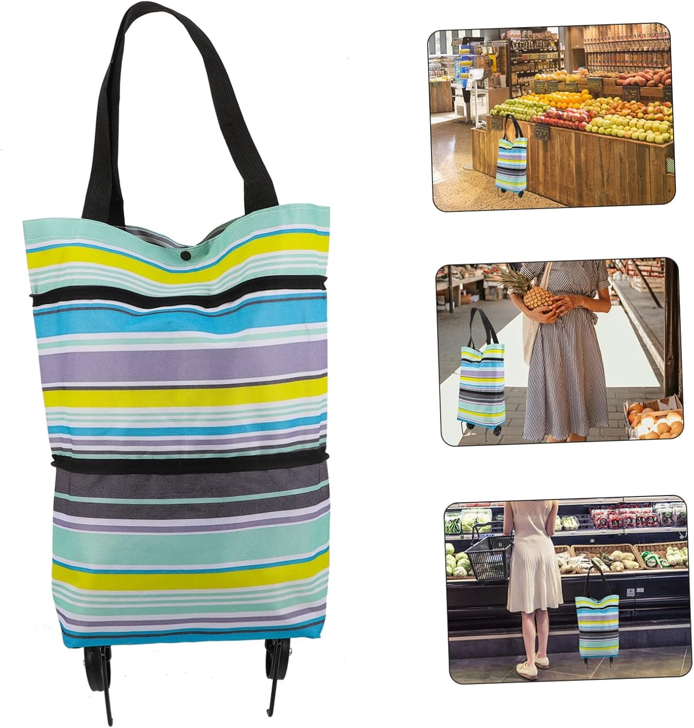 – Large capacity, so that you can store many items, such as fruits, vegetables, , books and foods, etc foldable shopping bag with wheels.