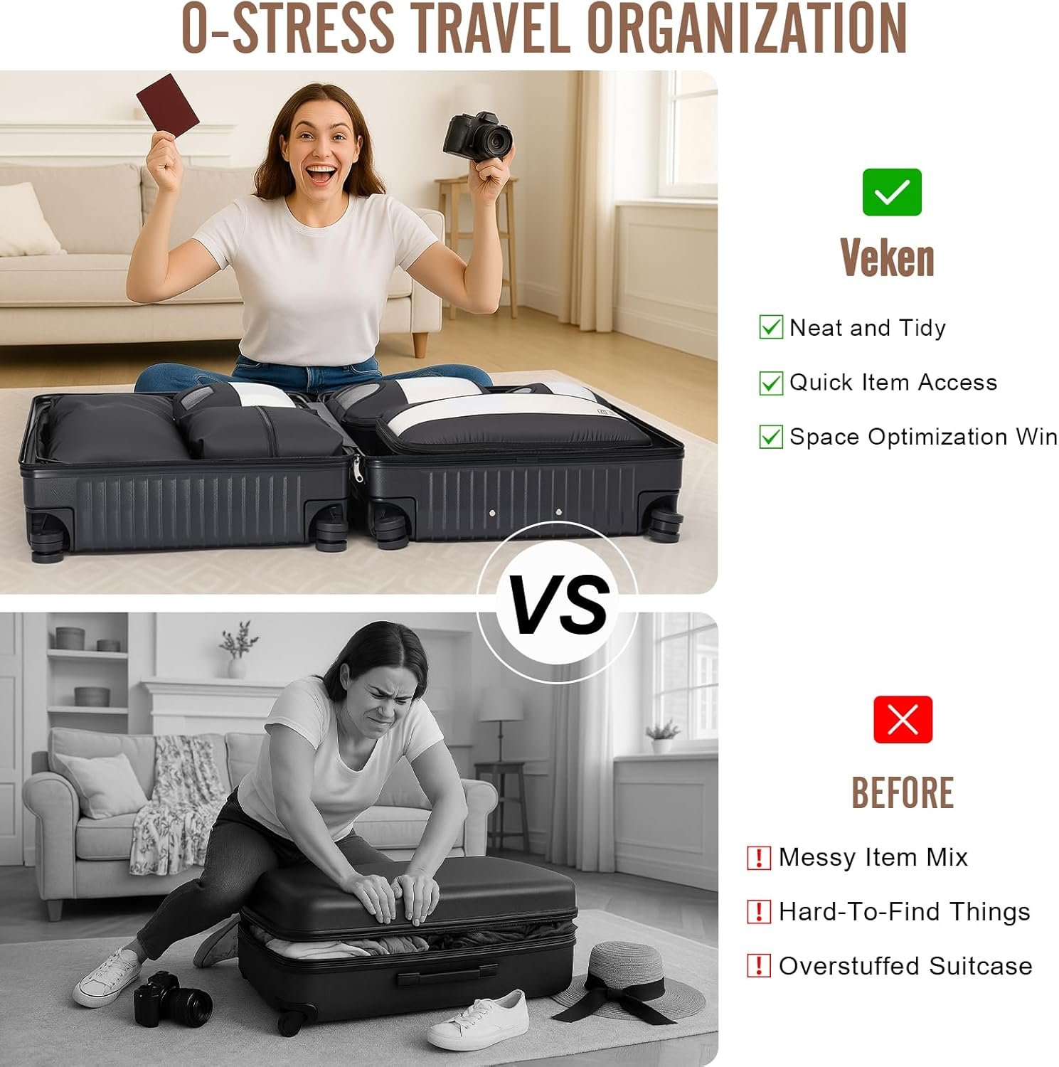 Stress-Free Traveling: Packing cubes help sort, organize, and quickly locate items, reducing the stress of packing. Keep your belongings in order, and avoid the frustration of unpacking for just one item. Enhance your journey with efficient organization.