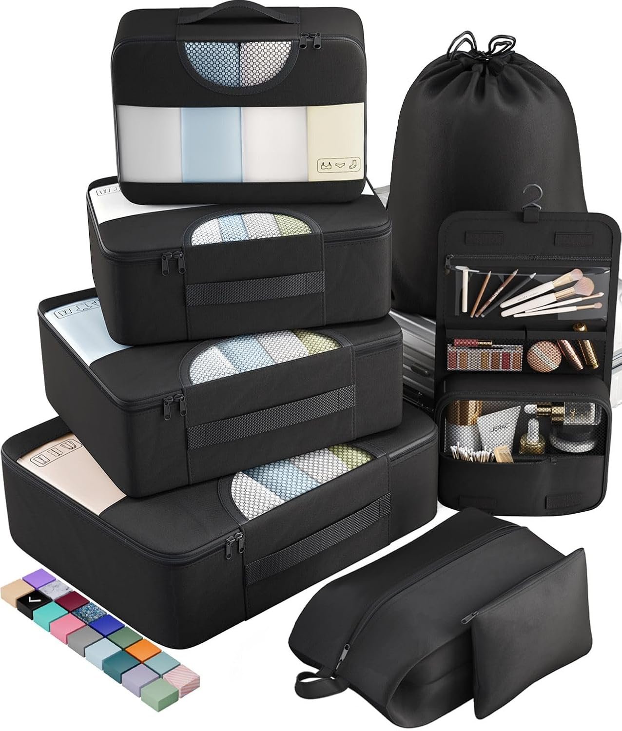Veken 8 Set Packing Cubes for Travel Essentials, Suitcase Organizer Bags in 4 Sizes, Carry-On Luggage Accessories with Large Laundry & Hanging Toiletry Bag, Must-Have for Airplane, Road Trip & Camping