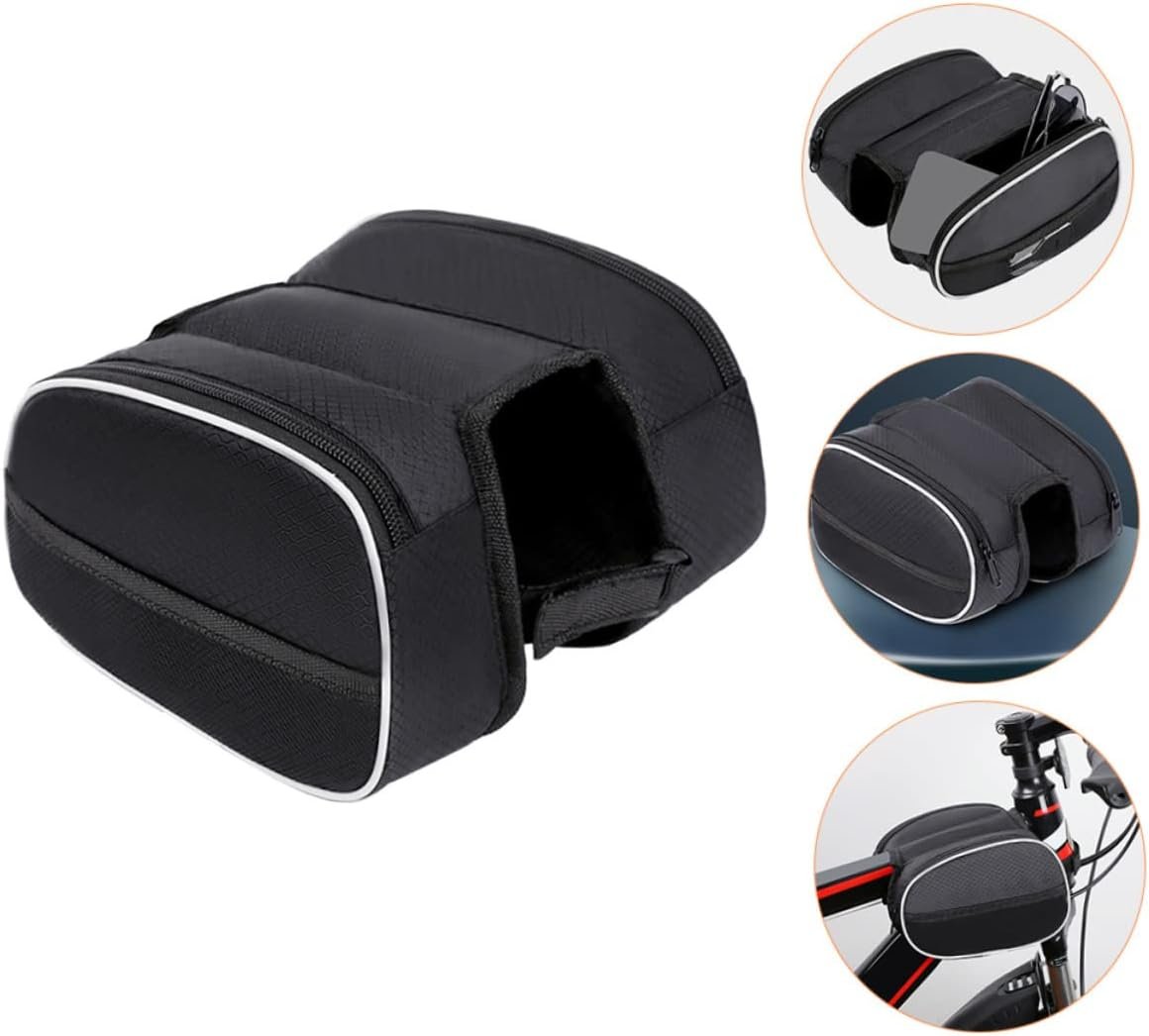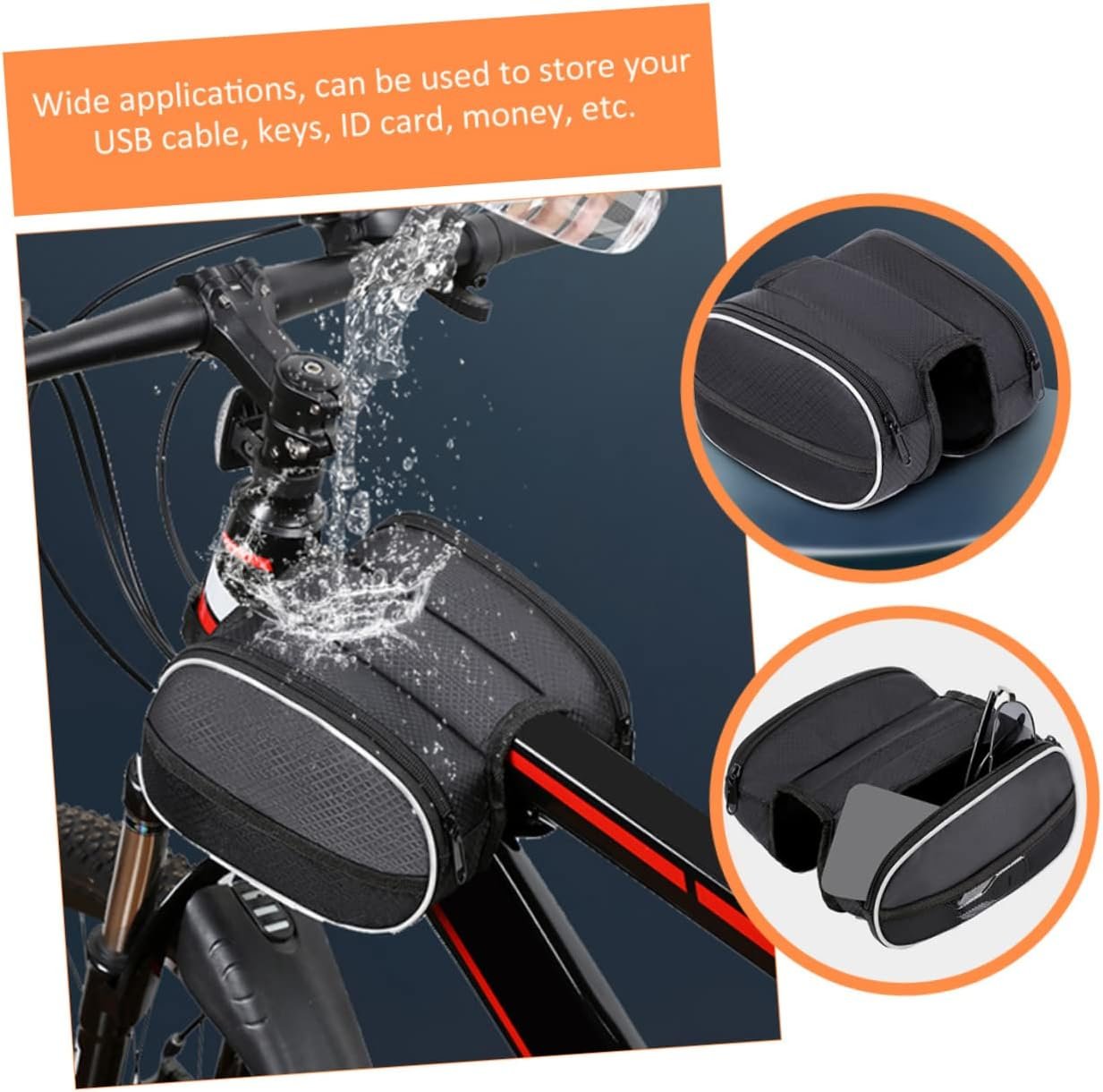 Bike frame pouch:when well mounted on the front beam of bike, it would not move around even if you ride on a bumpy road,cycling storage pouch