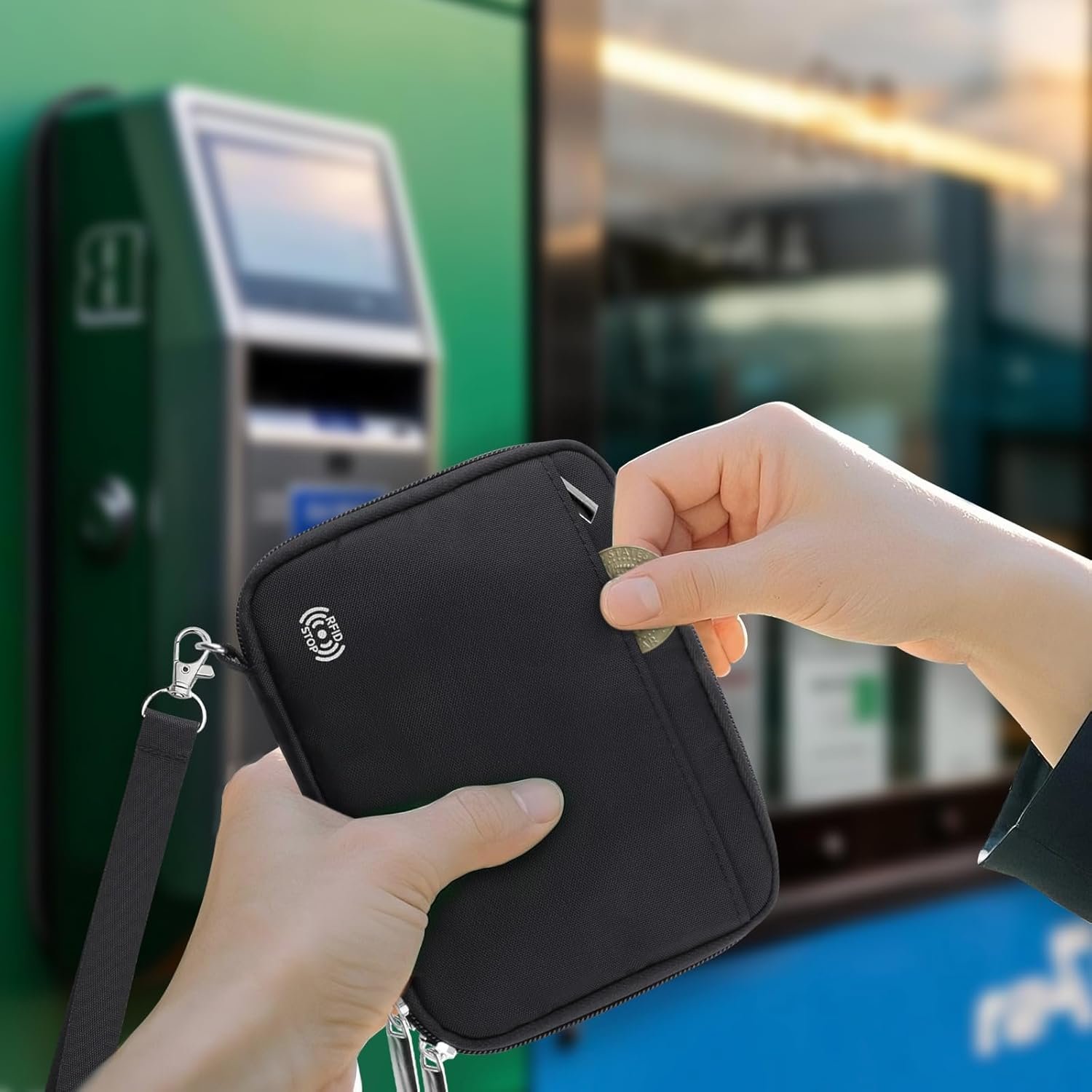 Convenient Detachable Wrist Strap: Featuring a detachable wrist strap, this travel document organizer offers easy carrying options and ensures hands-free convenience, whether you’re navigating through airports, exploring new cities, or simply running errands
