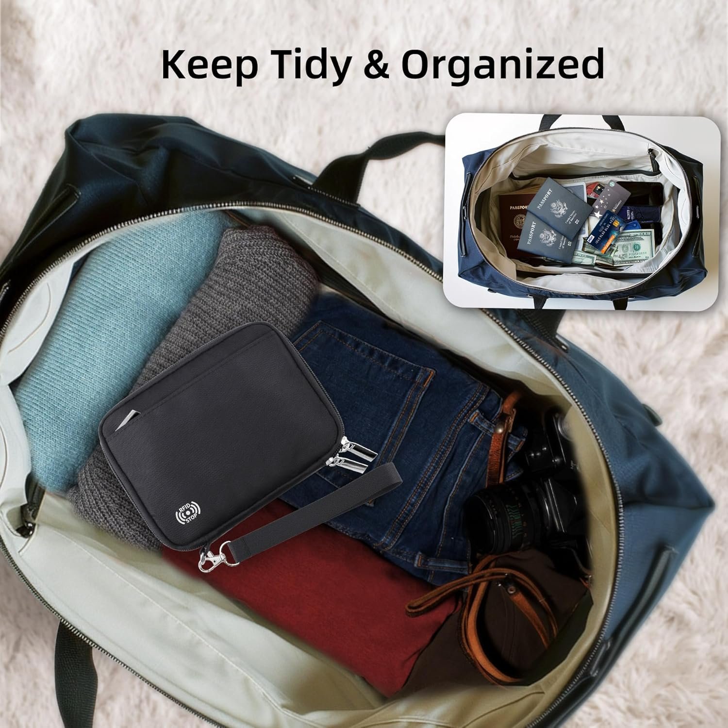 Water-Resistant Material: Crafted from premium nylon material, this travel document holder is splash-water-resistant(note: zipper part is not waterproof), ensuring your important documents and belongings stay safe and dry in any weather condition.