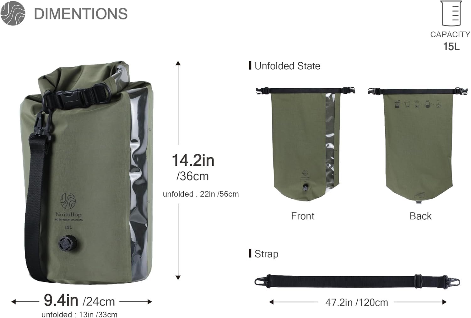 This washbag doubles as a tote and dry bag, so you can easily carry your essentials anywhere. Enjoy convenience on every adventure!