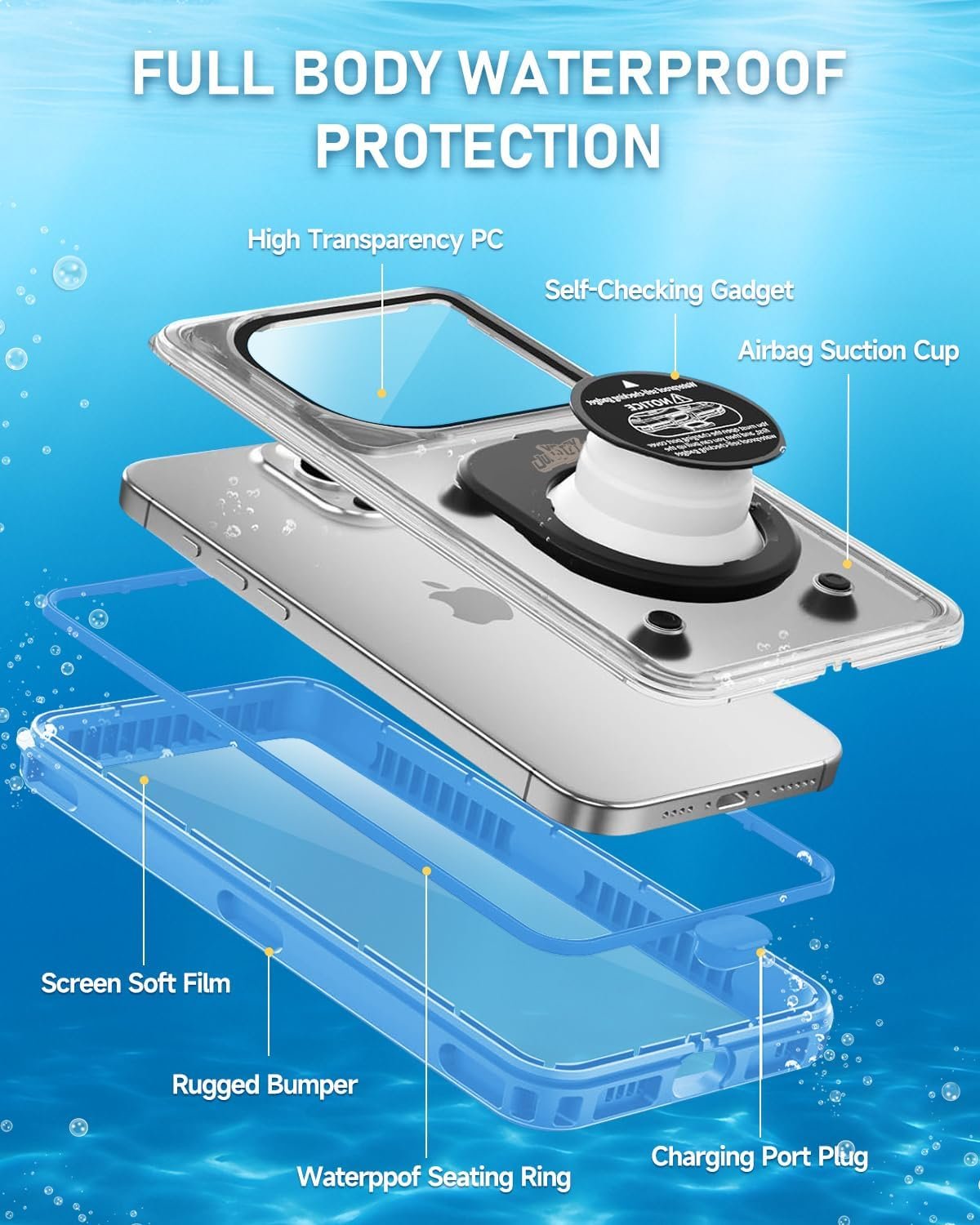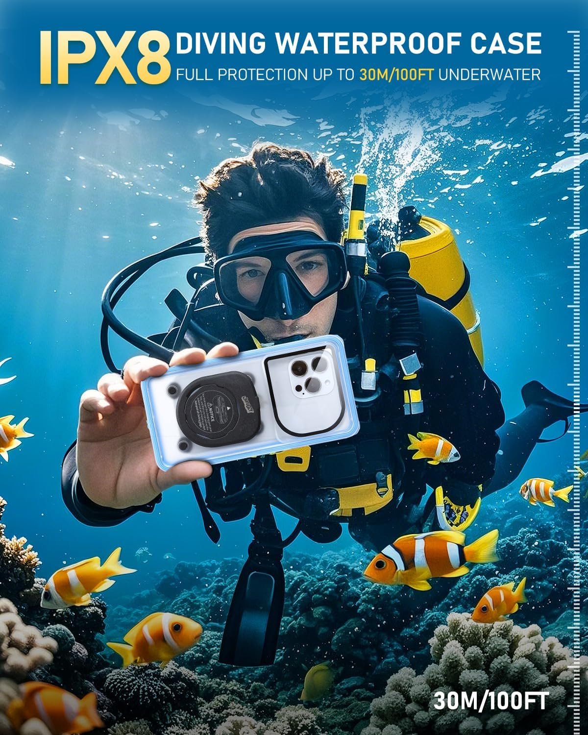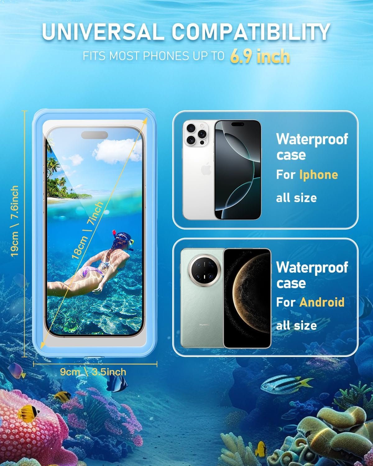 【UNIVERSAL COMPATIBILITY – FITS MOST PHONES UP TO 6.9 INCHES】Our phone waterproof case is designed to fit a wide range of devices, including iPhone, Samsung, and more, up to 6.9 inches. Its waterproof phone case for snorkeling design ensures a secure fit. For best results, remove your existing phone case before use to achieve the perfect waterproof seal.