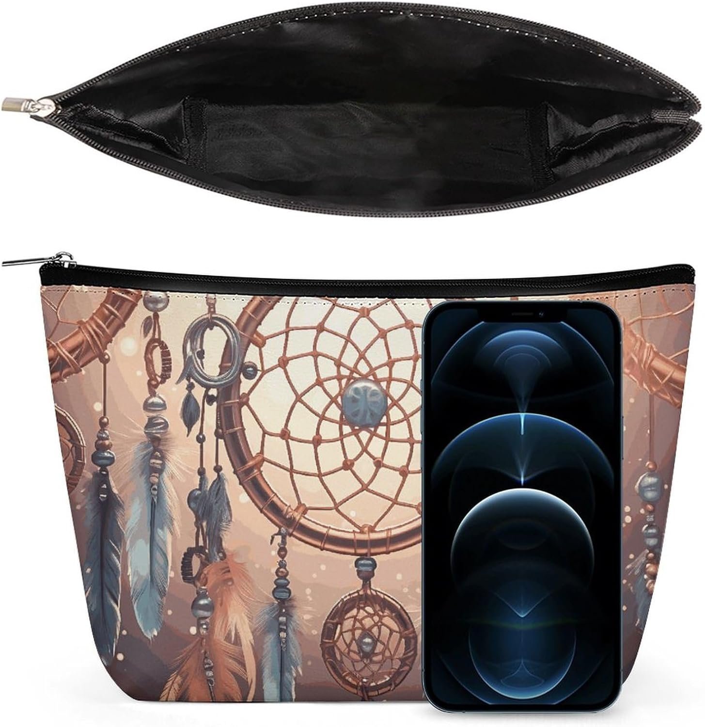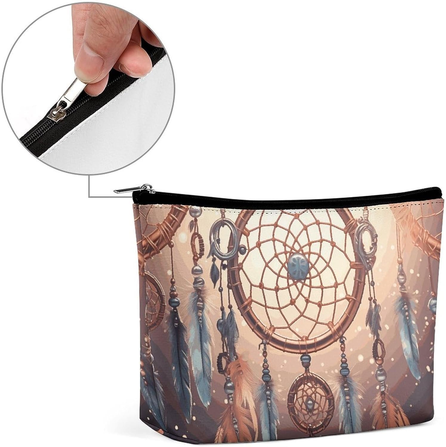 Practical Features: Each Native American Dream Catcher Cute Makeup Pouch Is Equipped with a Sturdy, Smooth, Gliding Metal Zipper That Keeps Items Secure Without Spillage While Enabling Quick Access. The Wipe-Clean Surface Makes Maintenance Convenient