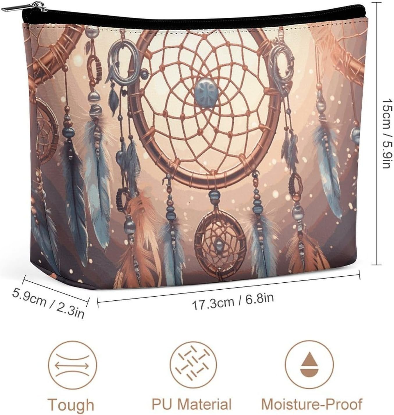 Premium Material: Made from High-Quality PU Leather with Reinforced Seams, This Native American Dream Catcher Travel Toiletry Bag Is Built to Last. It’s Waterproof, Luxurious, And Built to Last. With This Native American Dream Catcher Zippered Pouch Bags, You Can Travel Worry-Free, Knowing It Will Keep Your Makeup Safe and Sound