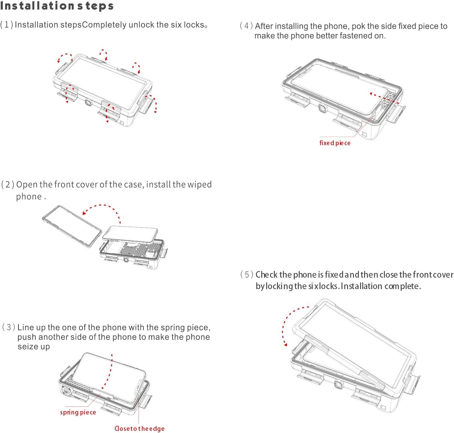 【Correct Installation】Please refer the instructions carefully before installation. This case is used for protecting your phone and taking great pictures when surfing, diving, snorkeling, or other outdoor activities. If you have any questions, WillBox team will respond to your request within 12 hours!
